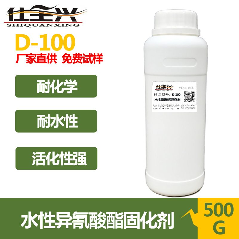 D-100是一款非离子型亲水改性的多异氰酸酯预聚体,通用性强,环保无溶剂,100%固含量。与水性羟基树脂配套用于双组份聚氨酯涂料,具有较长的活化期,漆膜具有高光泽、高丰满度、抗黄变、并具有优异的耐化性和机械性能。