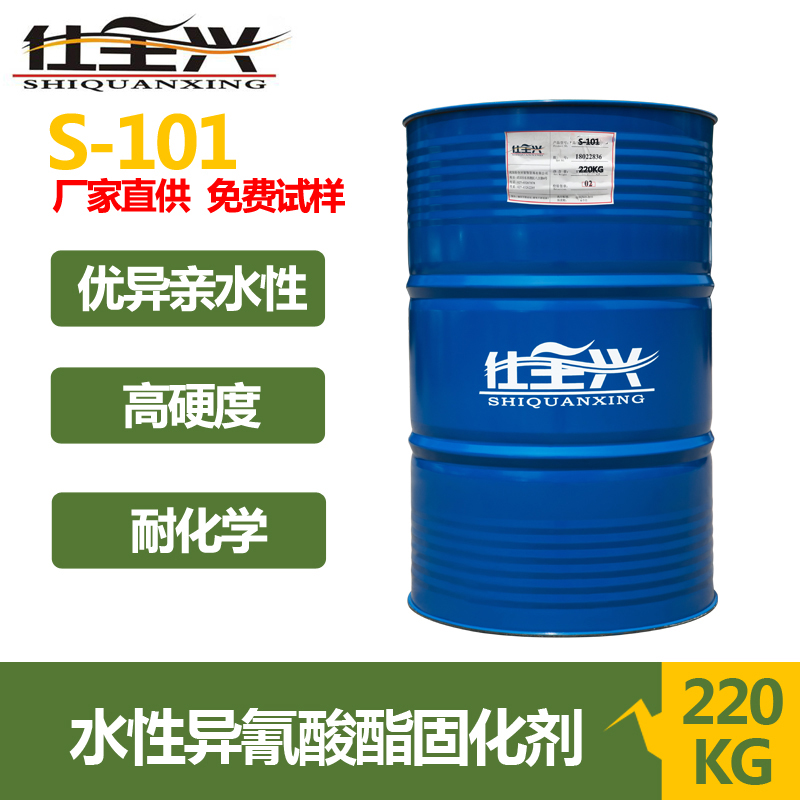 S-101是一款阴离子型亲水改性的多异氰酸酯预聚体,水分散性好,环保无溶剂,100%固含量。与水性羟基树脂配套用于双组份聚氨酯涂料,漆膜具有高光泽、高丰满度、抗黄变、并具有优异的耐化性和机械性能。