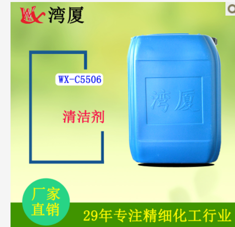 WX-C5506清洗剂是由一种由阴离子型和非离子表面活性剂, 助洗剂、水质软化剂、金属缓蚀剂及其它助剂所组成的高效除油剂。本产品对动植物油和矿物油具有良好的去除能力,适合紫铜、黄铜等金属制品在常温或中温下的油污与氧化物的清洗。