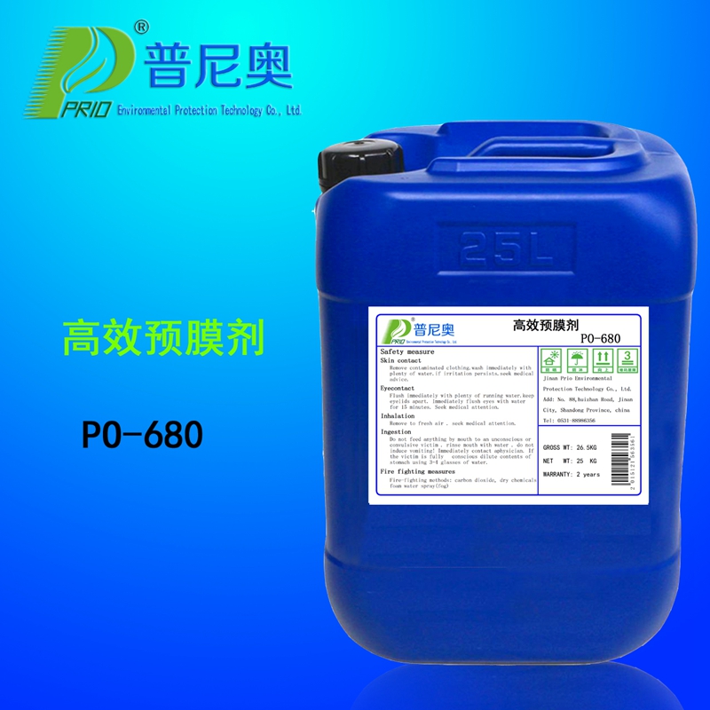 产品性能 PO-680高效预膜剂主要由多种络合剂物、分散剂、成膜剂、表面活性剂等组成,有机络合物中氧原子的未共享电子对与铁、钙等金属离子或带有部分正电荷的铁原子发生化学吸附,形成配位键,最后产生一层难溶的螯合膜覆盖在碳钢等金属表面,这种膜电阻大并能使金属和水中的腐蚀介质隔离,从而起到抑制腐蚀的作用。 PO-680高效预膜剂具有成膜速度快,膜质细密均匀,化学稳定性好,腐蚀率低等特点。PO-680高效预膜剂对水质的适应力强不受水中的铜、铁等有害离子的干扰,主要用于循环冷却水系统新装置开车或系统检修后的换热气设备和管道的预膜,使金属表面形成一层保护膜,防止运行时对碳钢、铜合金、不锈钢等材质的腐蚀。