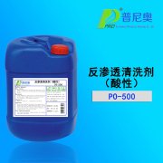 反渗透系统运行的稳定性取决于去原水水质的预处理的水平。但是无论如何反渗透在运行一定时间之后(一般3—12个月),都要受到不同程度的污染,化学清洗是恢复膜性能的必要手段。PO-500含有独特的缓冲剂、表面活性剂、螯合剂、分散剂。以降低PH、螯合、分散等机理去除碳酸盐、硫酸钙、金属氧化物污垢。可以防止洗脱下来的垢晶体划伤反渗透膜。同时,在去除污垢之后再加以药剂中的表面活性剂修复反渗透膜