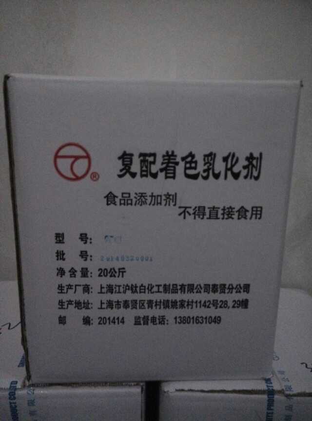 复配着色乳化剂产品在不断的更新,现在的产品是第四代和第五代了。 浆料型白色素系列产品,分为A型、B型、C型、D型、E型、F型、G型和H型。其中C型为定型产品,其它为不同用户要求添加不同食品助剂加工而成! 该系列产品粒度细而均匀,分散性好,见水即形成乳浊状,不沉淀,收藏一年不分层、不变质。