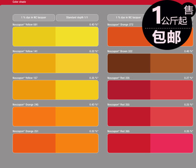 有效物质≥ -(%) 规格尺寸 -(mm) 保质期 -(个月) 执行标准 - 主要成分 - 主要作用 染料 CAS - 型号 奥丽素棕322汽巴棕2GL 活性染料的分类 其他活性染料 染料索引号 42 特色服务 -