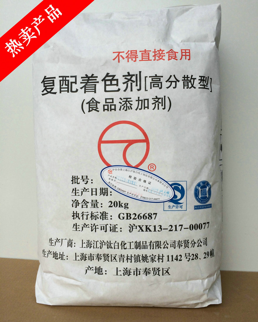 复配着色剂 高分散白色素推荐应用范围: 食品和医药工业;化妆品;牙膏;医用胶布等,本品呈乳白色粉未状、无任何异味,乳浊度远好于混浊剂类产品。用量也更低。具有很强耐酸、碱、盐、热特性,在环境PH2-10范围内能保持极好稳定性。适用于各类增加乳白度的食品中