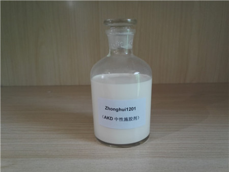 Zhonghui 1200、1201是以烷基烯酮二聚体(简称AKD)、阳离子表面活性剂为原料,经均质工艺乳化而成的白色乳液,广泛用于各种中#####文化纸、照相原纸、果袋纸、包装纸及纸板等施胶纸的生产。