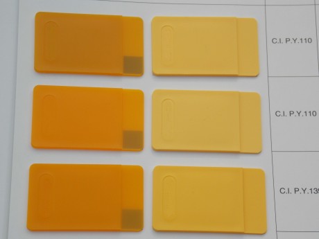 苏达山颜料2925黄, 国际索引号:110 耐热性:200 耐迁移性:5 耐候性:8 耐光性:8 半透明颜料 广泛应用于:涂料、塑胶、油墨等各类行业。