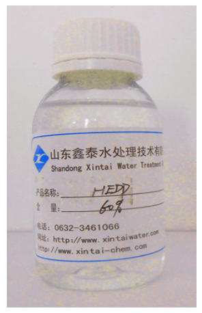 HEDP是一种有机膦酸类阻垢缓蚀剂,能与铁、铜、锌等多种金属离子形成稳定的络合物,能溶解金属表面的氧化物。在250℃下仍能起到良好的缓蚀阻垢作用,在高pH下仍很稳定,不易水解,一般光热条件下不易分解。耐酸碱性、耐氯氧化性能较其它有机膦酸(盐)好。可与水中金属离子,尤其是钙离子形成六圆环螯合物,因而具较好的阻垢效果并具明显的溶限效应,当和其它水处理剂复合使用时,表现出理想的协同效应。