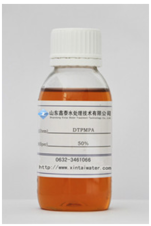 DTPMPA中文名:二乙烯三胺五甲叉膦酸,是有机膦酸类缓蚀阻垢剂,主要用于工业循环水的缓蚀和阻垢。 DTPMPA无毒,易溶于酸性溶液中,阻垢缓蚀效果俱佳且耐温性好,可抑制碳酸盐、硫酸盐垢的生成,在碱性环境和高温下(210℃以上)阻垢缓蚀性能较其它有机膦好。DTPMPA在水处理中用作循环冷却水和锅炉水的阻垢缓蚀剂,特别适用于碱性循环冷却水中作为不调pH的阻垢缓蚀剂,并可用于含碳酸钡高的油田注水和冷却水、锅炉水的阻垢缓蚀剂;在复配药剂中单独使用本品,无需投加分散剂,污垢沉积量仍很小。