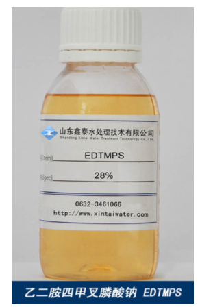 EDTMPS是含氮有机多元膦酸,属阴极型缓蚀剂,与无机聚磷酸盐相比,缓蚀率高3~5倍。能与水混溶,无毒无污染,化学稳定性及耐温性好,在200℃下仍有良好的阻垢效果。EDTMPS在水溶液中能离解成8个正负离子,因而可以与多个金属离子螯合,形成多个单体结构大分子网状络合物,松散地分散于水中,使钙垢正常结晶被破坏。EDTMPS对硫酸钙、硫酸钡垢的阻垢效果好。 EDTMPS用于循环水和锅炉水的缓蚀阻垢剂、无氰电镀的络合剂、纺织印染行业螯合剂和氧漂稳定剂。