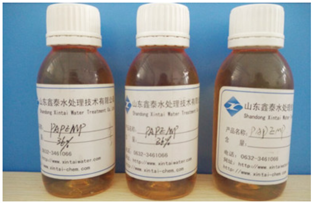 PAPEMP为最新一代水处理剂(多功能有机多元膦酸),具有很高的螯合分散性能和很高的钙容忍度及优异的阻垢性能,该药剂可作为循环冷却水系统的阻垢缓蚀剂,特别适用于高硬度、高碱度、高pH的循环冷却水系统和油田水处理。对碳酸钙、磷酸钙、硫酸钙的阻垢性能优异,同时可有效地抑制硅垢的形成,且具有良好的稳定金属离子如锌、锰、铁的作用。 PAPEMP用于反渗透系统的膜阻垢剂,多级闪蒸系统等高含盐量、高浊度、高温系统的阻垢和缓蚀(如煤汽化系统高温高浊水系统的阻垢),纺织印染助剂和造纸助剂(返黄抑制剂),可替代EDTA、DTPA、NTA等。