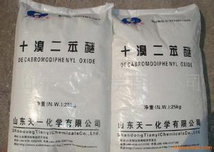 十溴二苯醚是一种高效广谱添加剂阻燃剂,白色粉末,熔点大于300℃,无腐蚀性,不溶于水、乙醇、丙酮、苯等溶剂,微溶于氯代芳烃,稳定性良好。广泛应用于橡胶、塑料、纤维等材料。 十溴二苯醚产品为白色微细粉末,溶点:304-309℃,含溴量大于82%,比重为3.02,几乎不溶于所有溶剂,5%热量失重时温度大于320℃,热稳定性好,大白鼠口服LD50大于15%g/kg,是一种无毒、无污染的高效阻燃剂。