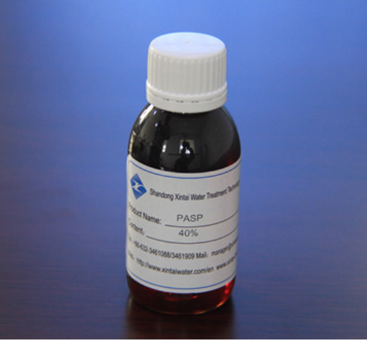 聚天冬氨酸(PASP)为水溶性聚合物,是一种新型绿色水处理剂,具有无磷、无毒、无公害和可完全生物降解的特性。对离子有极强的螯合能力,具有缓蚀与阻垢双重功效,对碳酸钙、硫酸钙、硫酸钡、磷酸钙等成垢盐类具有良好的阻垢效果,对碳酸钙的阻垢率可达100%。聚天冬氨酸(PASP)同时具有分散作用并可有效防止金属设备的腐蚀。 聚天冬氨酸(PASP)可替代含磷的水处理剂,以避免水体的富营养化和排放二次污染。