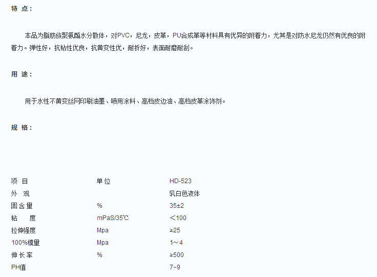 东莞市宏达聚氨酯 皮革表外用聚氨酯树脂 水性聚氨酯分散液HD-523