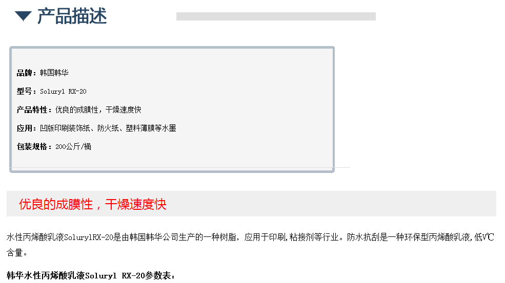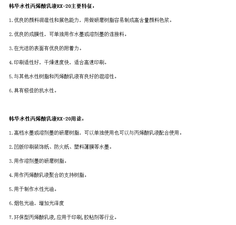 韩华水性丙烯酸乳液Soluryl RX-20