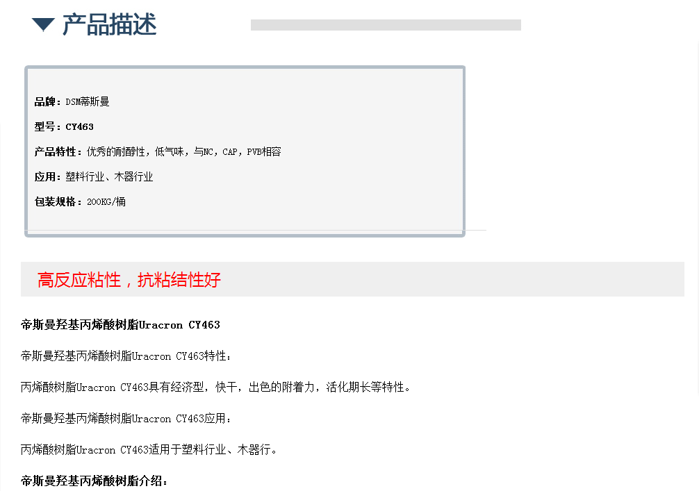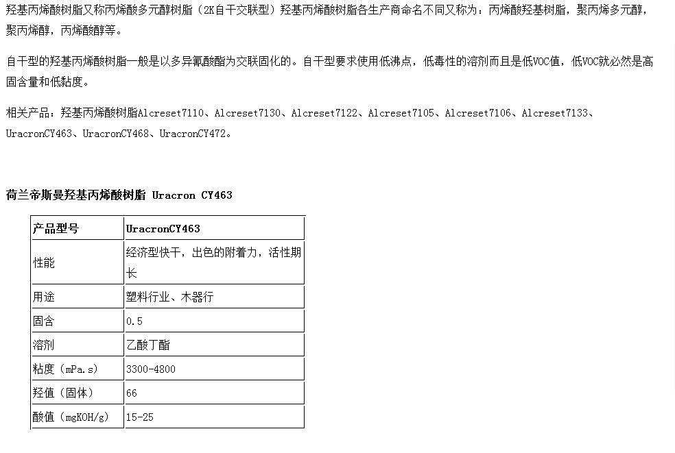帝斯曼羟基丙烯酸树脂Uracron CY463