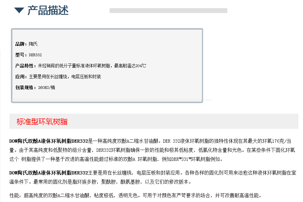 DOW陶氏双酚A液体环氧树脂DER332
