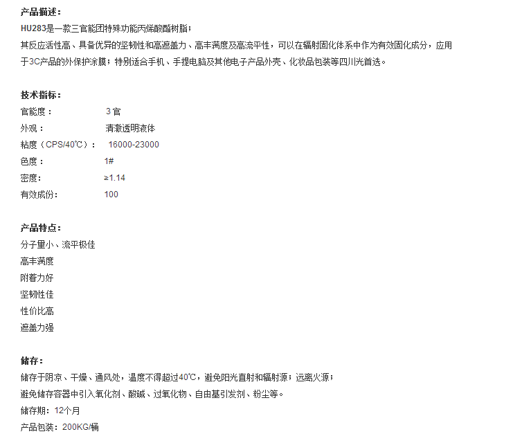 广东昊辉 特殊官能丙烯酸酯 HU283 三官能团特殊功能丙烯酸酯树脂