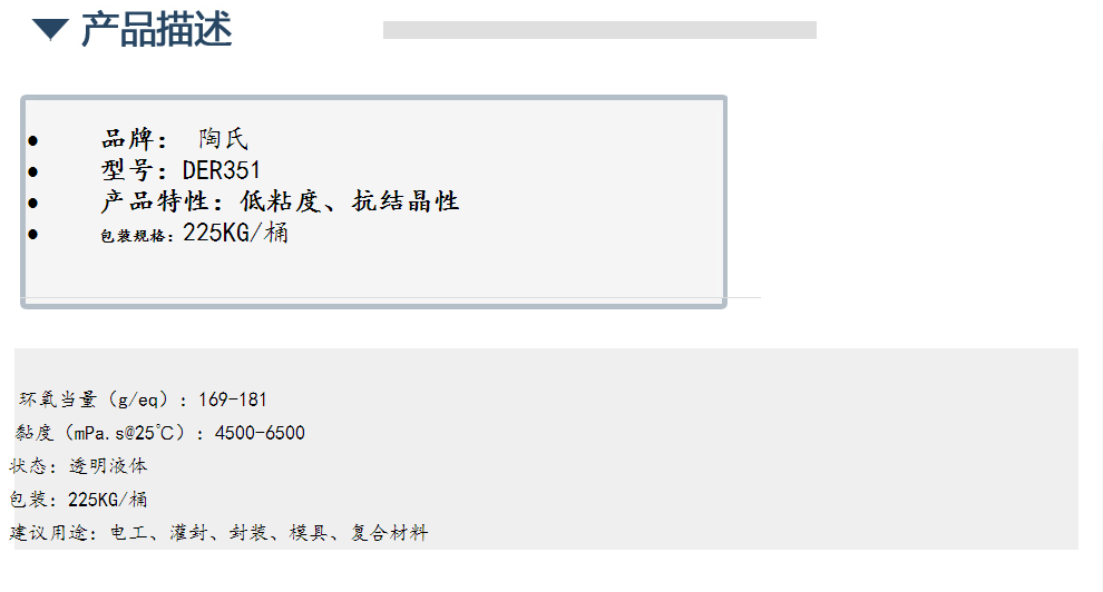 DOW双酚F液体环氧树脂DER351