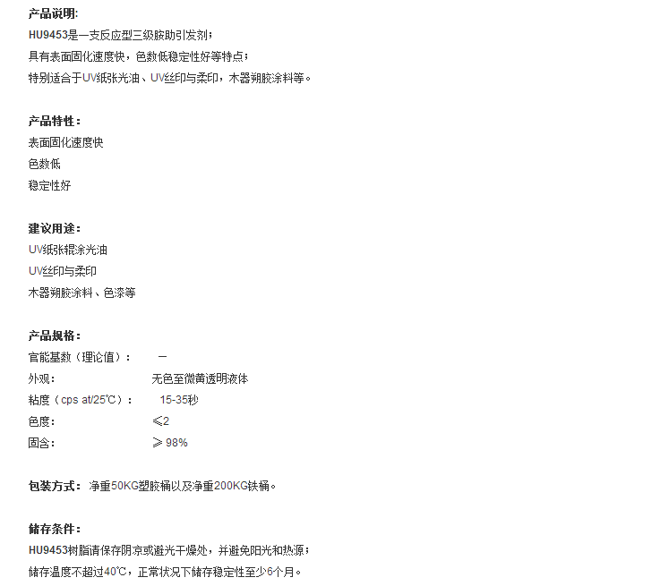 广东昊辉 特殊官能丙烯酸酯 反应型三级胺助引发剂 HU9453