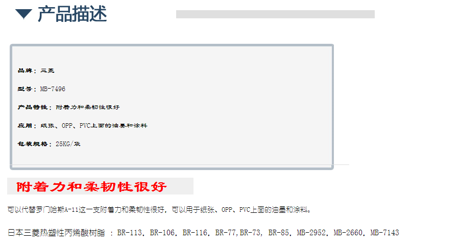 日本三菱热塑性丙烯酸树脂MB-7496