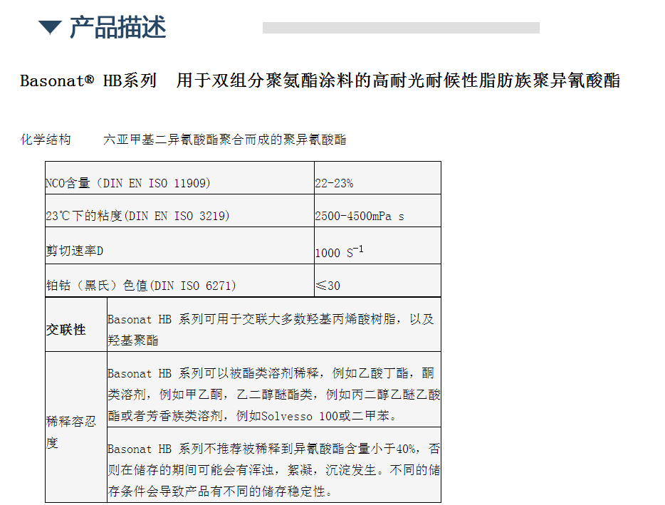巴斯夫耐黄变异氰酸酯固化剂 Basonal HB 100