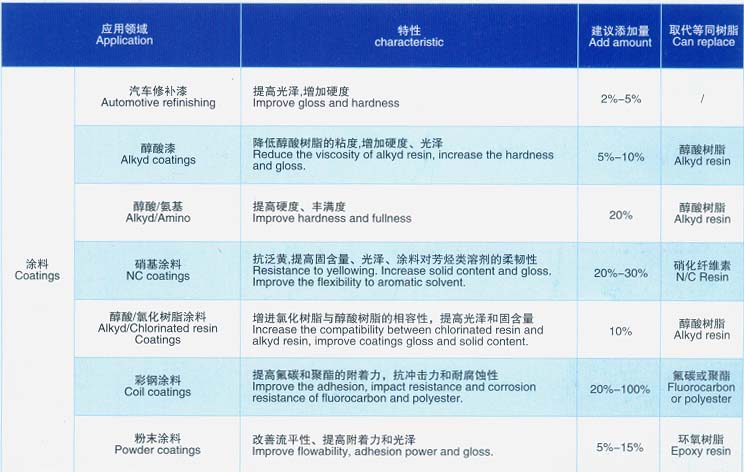 应用领域广泛:汽车修补漆 醇酸漆 硝基涂料 彩钢涂料 粉末涂料