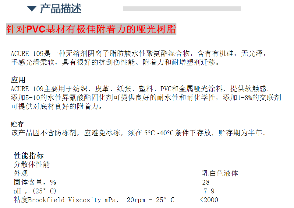 拜耳水性哑光树脂 Acure 109