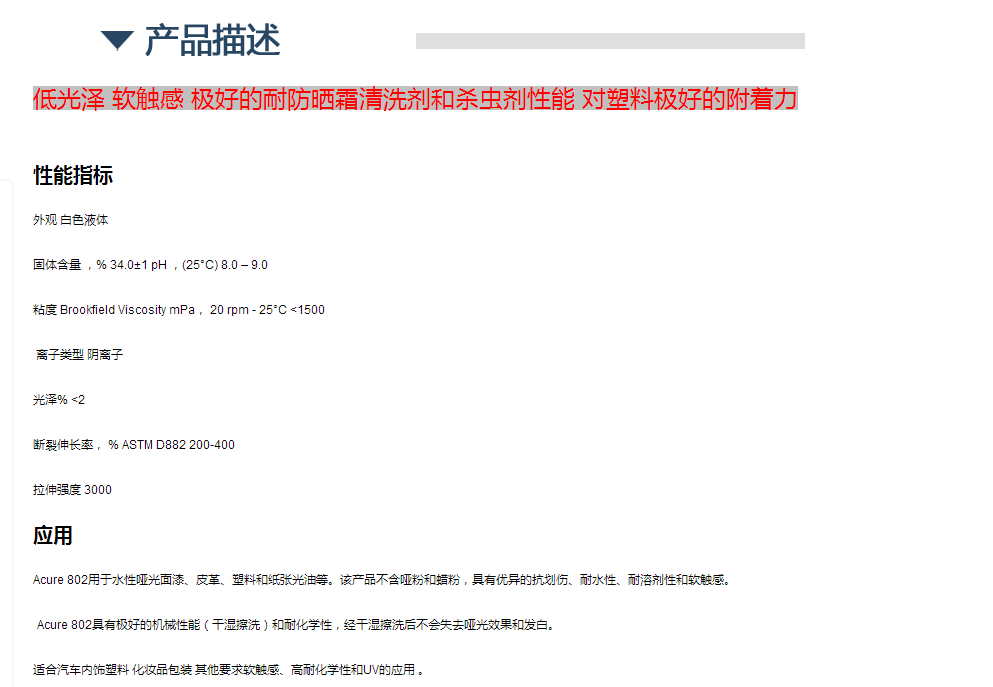拜耳水性哑光树脂 Acure 802