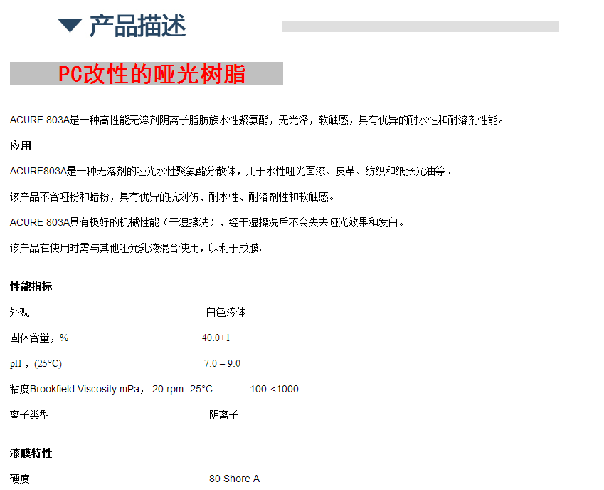 拜耳水性哑光树脂 Acure 803A