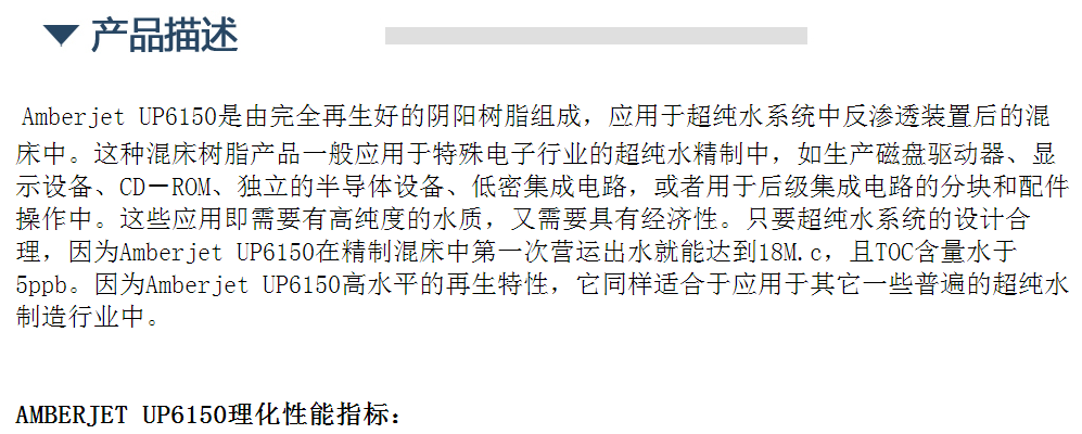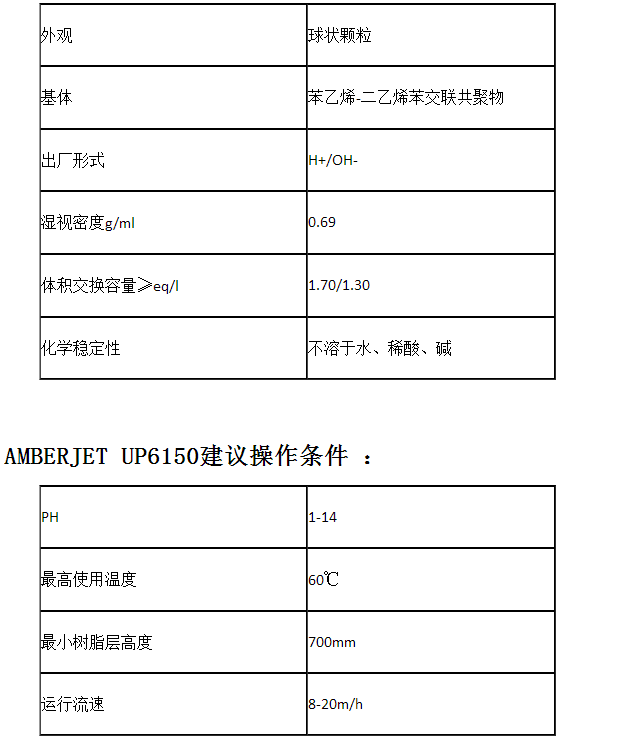 罗门哈斯离子交换树脂 AMBERJET UP6150