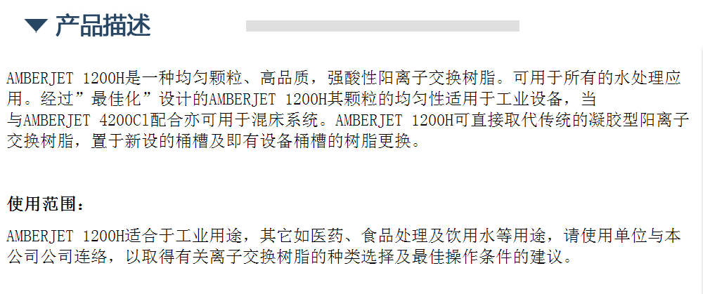 罗门哈斯离子交换树脂 AMBERJET 1200H