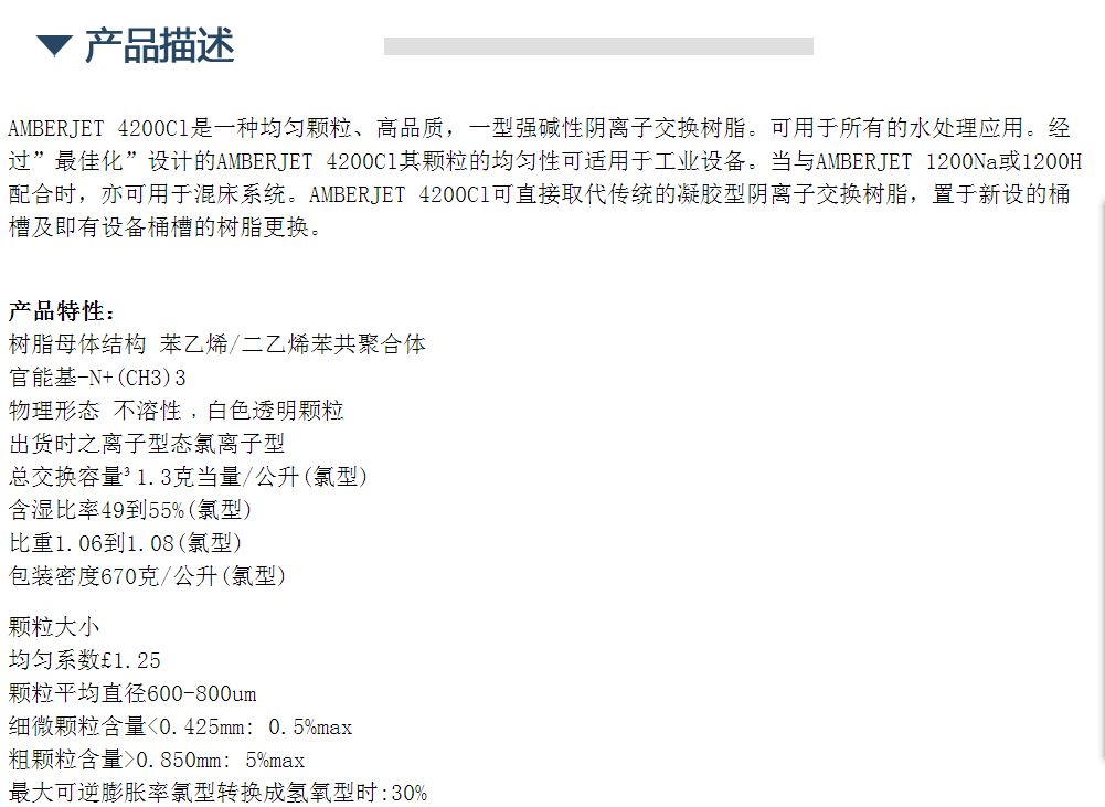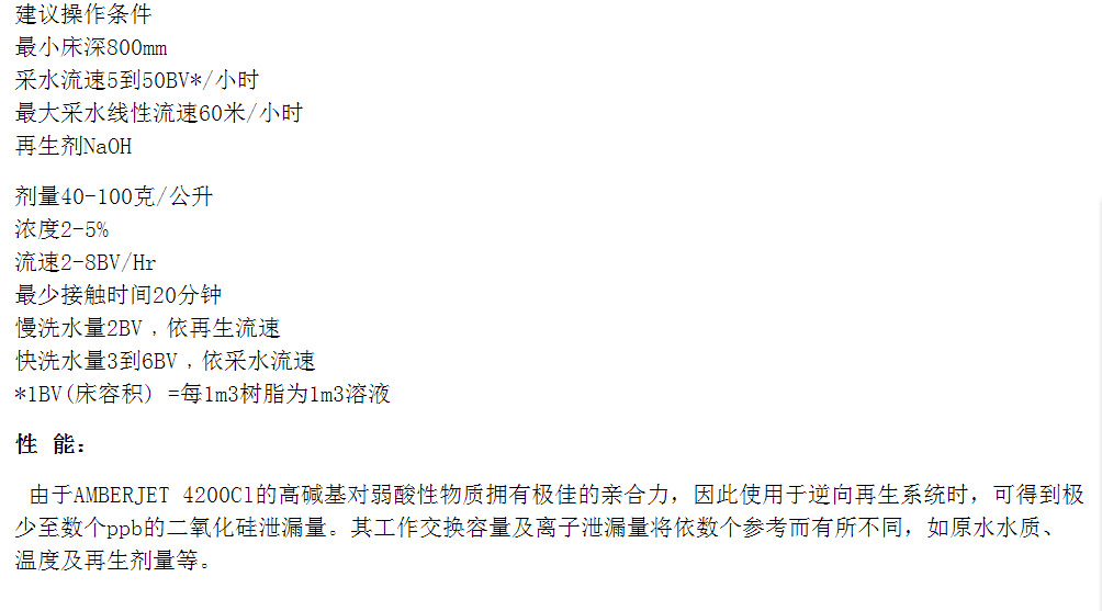 罗门哈斯离子交换树脂 AMBERJET 4200Cl