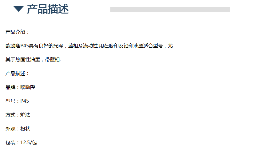 欧励隆色素碳黑P45 蓝相油墨炭黑 Orion Printex 45 德固赛原装进口