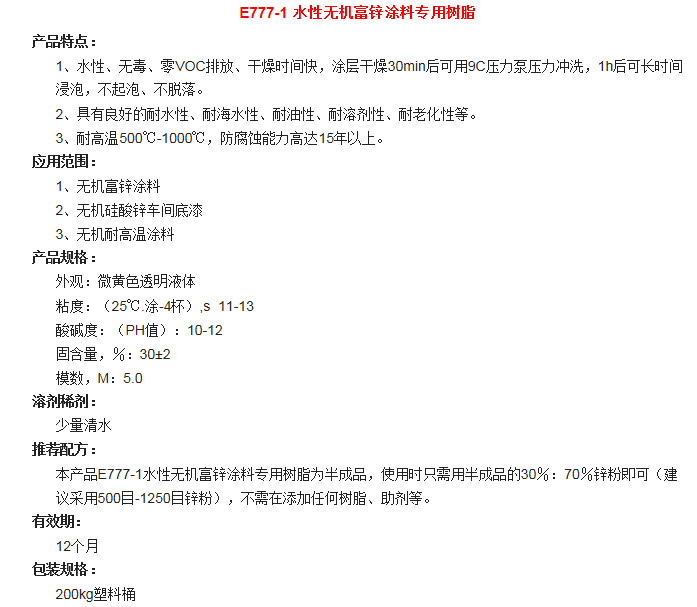 湖北巴斯特 E777-1 水性无机富锌涂料专用树脂