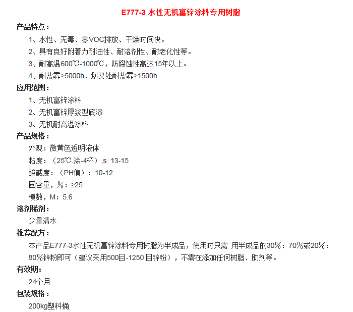 湖北巴斯特 E777-3 水性无机富锌涂料专用树脂