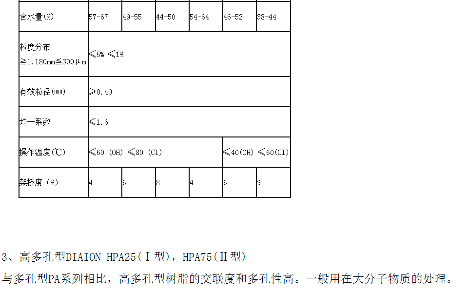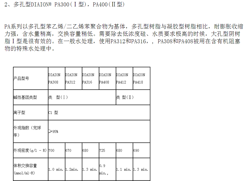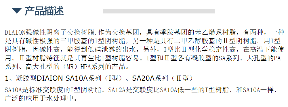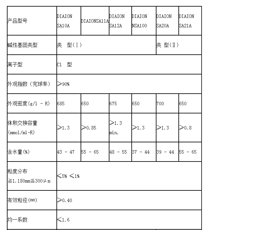 DIAION强碱性阴离子交换树脂SA10A(凝胶型SA系列,多孔型PA系列)
