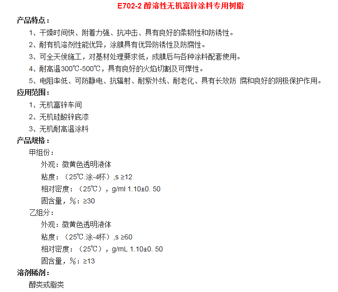 湖北巴斯特 E702-2 醇溶性无机富锌涂料专用树脂