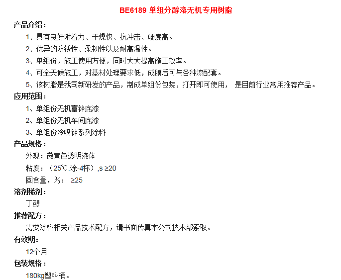 湖北巴斯特 BE6189 单组分醇溶无机专用树脂