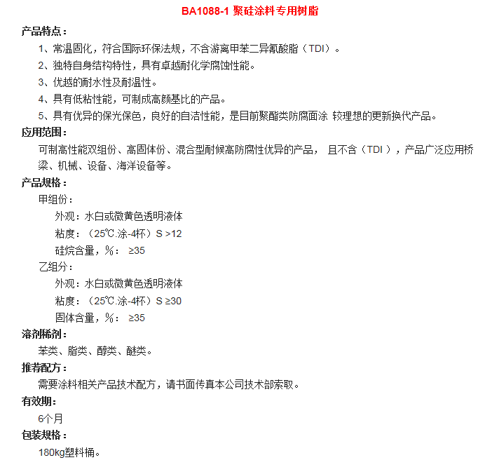 湖北巴斯特 BA1088-1 聚硅涂料专用树脂