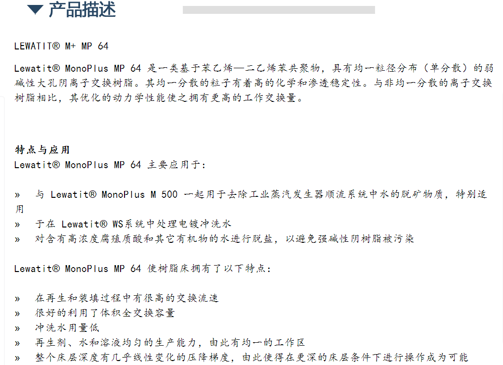 朗盛离子交换树脂 LEWATIT M+ MP 64
