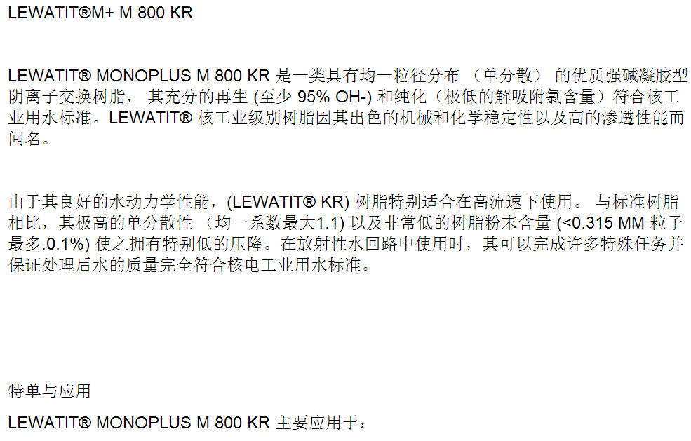 朗盛离子交换树脂 LEWATIT M+ M 800 KR