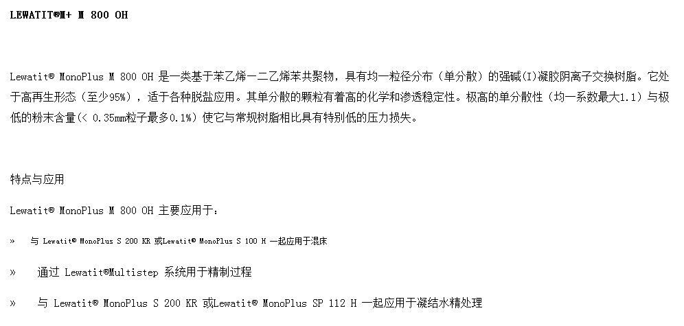 朗盛离子交换树脂 LEWATITM+ M 800 OH
