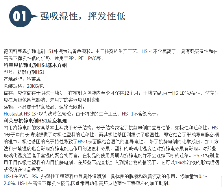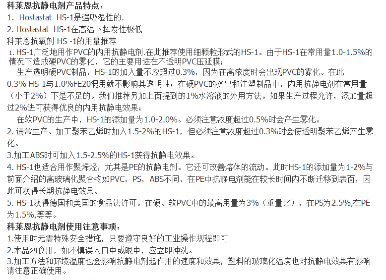 科莱恩抗静电剂Hostastat HS-1/HS1
