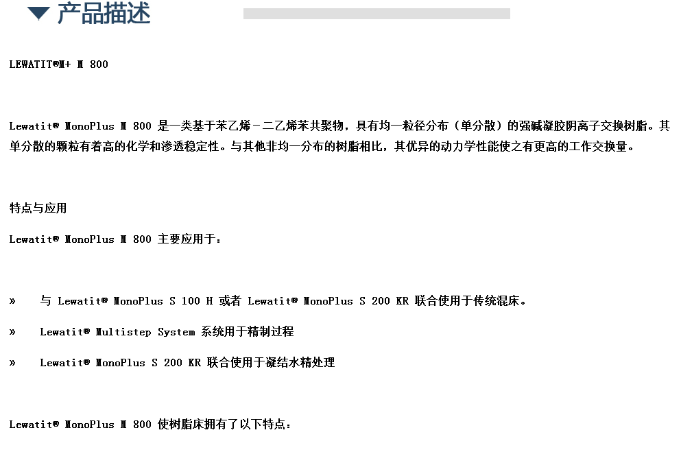 朗盛离子交换树脂 LEWATIT M+ M 800