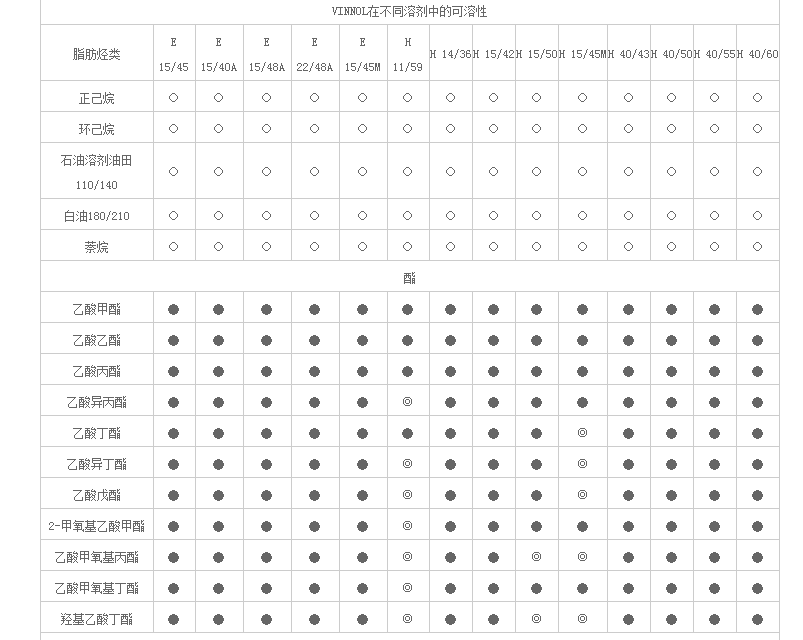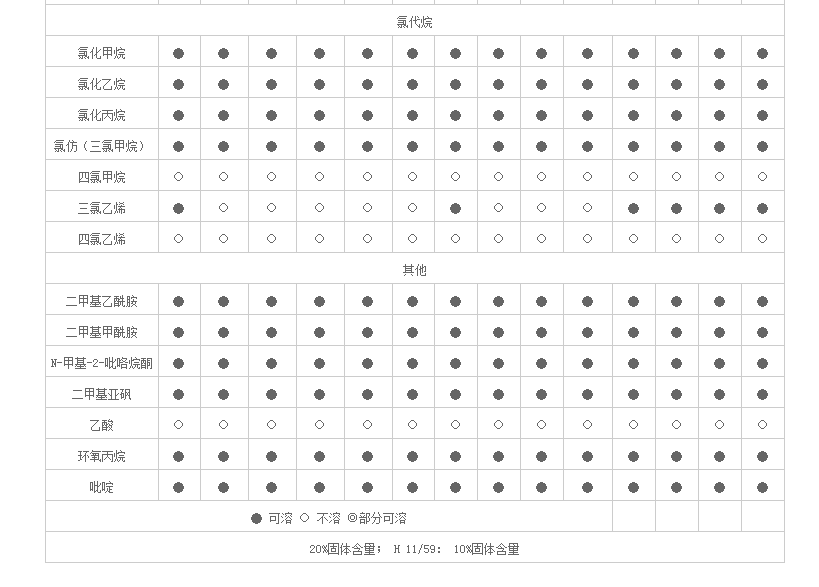 天津开发区国隆化工 水性体系助剂 VINNOL 表涂树脂 VINNOL在不同溶剂中的可溶性
