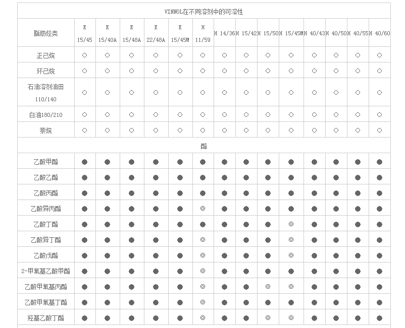 天津开发区国隆化工 水性体系助剂 VINNOL 表涂树脂 VINNOL在不同溶剂中的可溶性