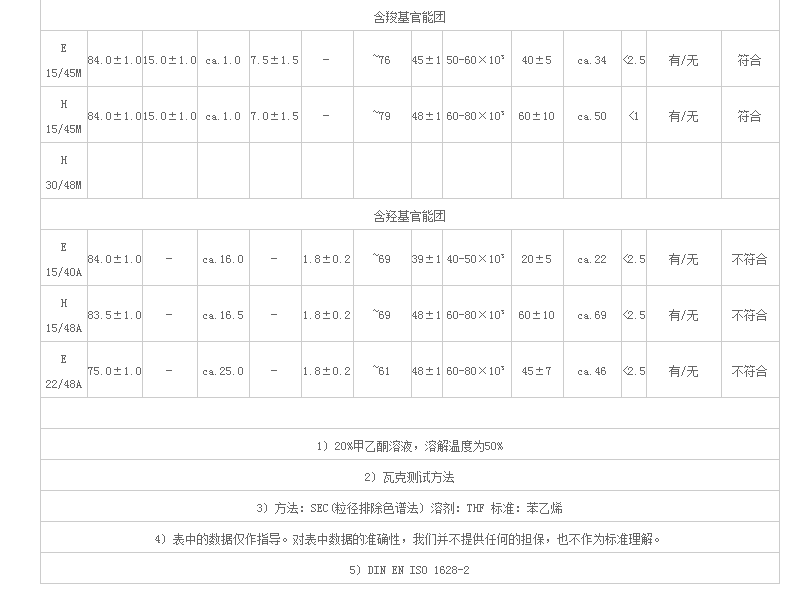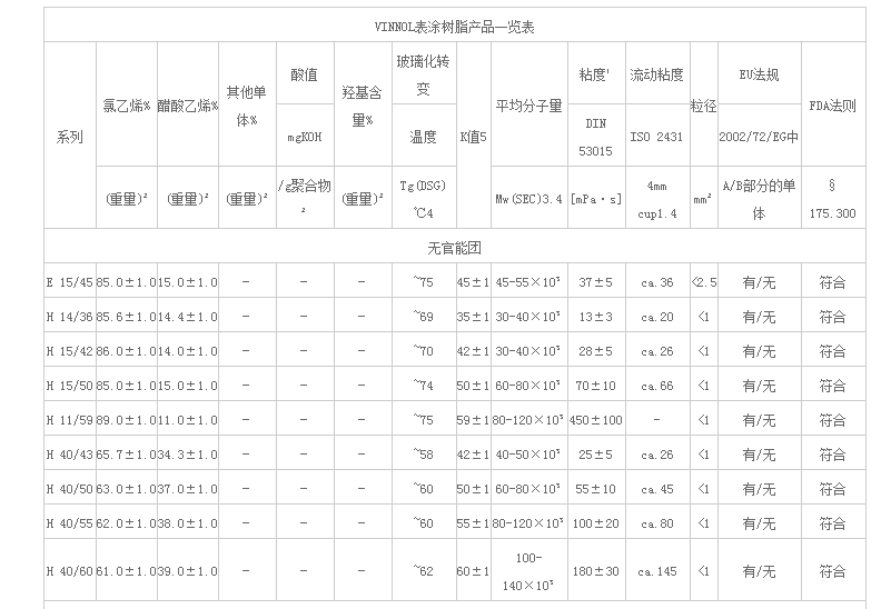 天津开发区国隆化工 水性体系助剂 VINNOL 表涂树脂 VINNOL表涂树脂产品一览表