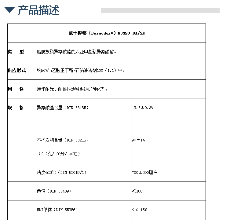 拜耳固化剂 德士模都(Desmodur)N3390 BA/SN