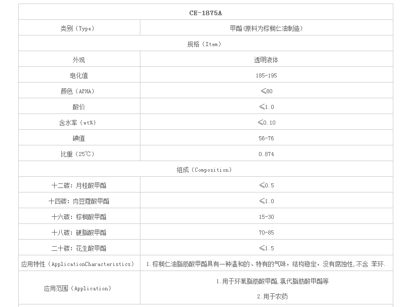 天津开发区国隆化工 橡塑添加剂 脂肪酸甲酯(美国)CE-1875A