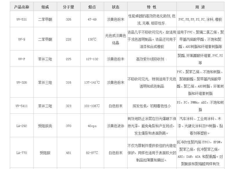 天津开发区国隆化工 橡塑添加剂 光稳定剂(台湾&日本)